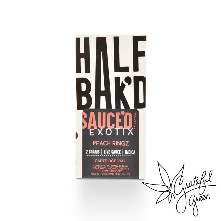The Half Bak’d Sauce’d Cartridge features a potent live resin blend of cannabinoids, including THCA, THCP, THCB, and Delta 9. Each cartridge contains 2 grams of high-viscosity oil and is compatible with any 510-thread battery, delivering smooth, flavorful vapor in a variety of strain-inspired profiles.